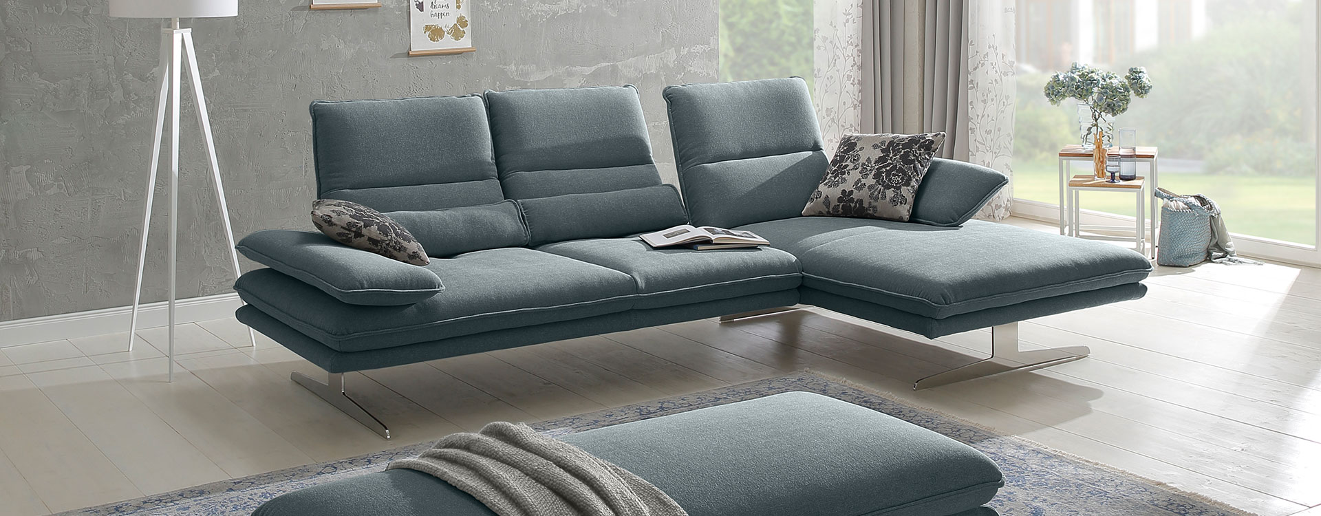 Aerial-light elegance. Straight forms as well as the aerial-light runner provide a lot of freedom on the ground in elegant rooms. The functional seat depth adjustment can be optionally completed by flexible headrests and armparts. The elegant tuck, metal colours for legs as well as the contrasting coloured thread make this favourite sofa the perfect residential dream.